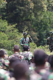 Pangdam III/Siliwangi Mayjen TNI Nugroho Budi Wiryanto menutup kegiatan Latihan Pratugas Satgas Pamtas Penyangga (Mobile) Yonif 310/KK Brigif 15 /Kujang II Dalam Rangka Operasi Pamtas Darat RI – PNG bertempat di Bumi Perkemahan Citis Desa Sukamantri Ciapus Gunung Salak Kecamatan Tamansari Kab. Bogor, Selasa (29/9/2020).
